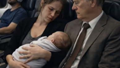 Vyčerpaná matka se snažila utišit své plačící dítě, ale únavou náhodou usnula na rameni sousedního muže: muž vypadal podrážděně, ale to, co udělal