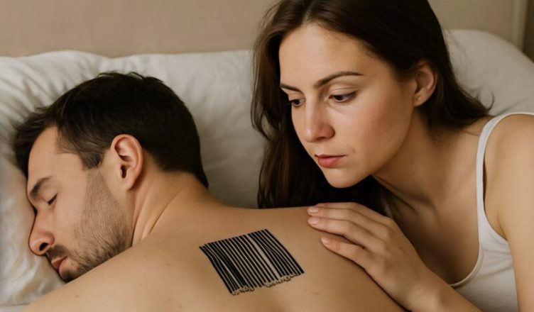 Dívala jsem se na ty černé pruhy vytetované na jeho kůži a nemohla jsem uvěřit, že to je opravdu můj manžel. Klidný dech, zavřené oči, pokojná tvář — ale teď už jsem věděla: skrývá přede mnou děsivé tajemství.