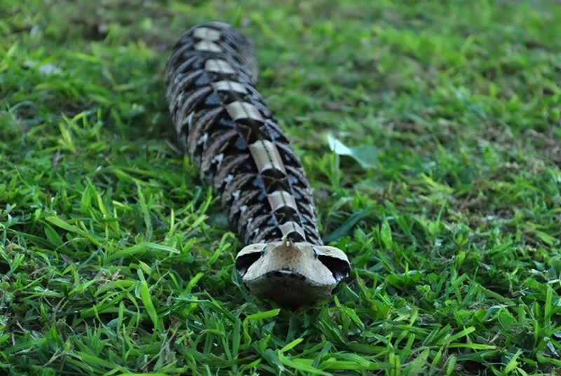 Navzdory svému děsivému „arzenálu“ gabunská zmije jen zřídka kouše lidi — pouze pokud je náhodně vyrušena. Ale bez protilátky jsou šance na přežití minimální.
