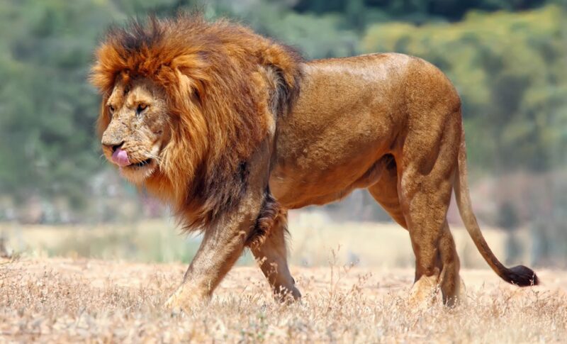 Jeho hříva se leskla na slunci, pohled byl těžký a hrozivý. Predátor vyšel z keřů a zastavil se jen pár metrů od dítěte.