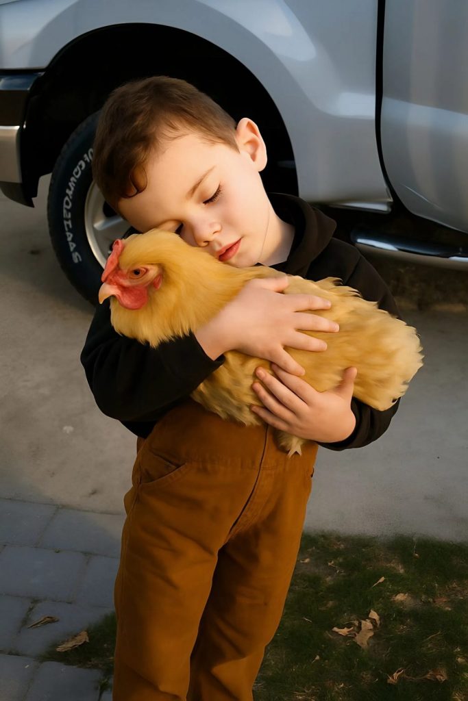 Malá, zlatavá, nešikovná slepička — ale pro něj je to víc než jen zvíře.