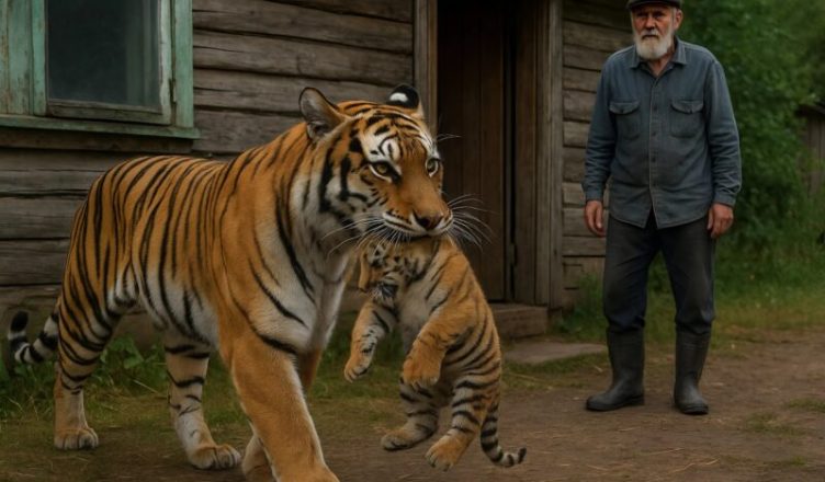 A jednoho rána, právě když slunce vycházelo nad stromy, se objevila znovu — tygřice. Bez agrese, bez strachu. Přiblížila se opatrně a zastavila se u kůlny. Mládě ji okamžitě poznalo a vydalo slabé zavrčení.