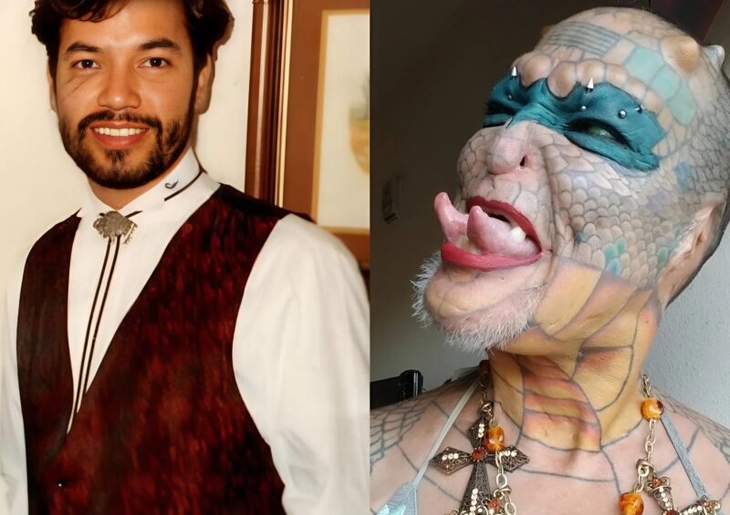Od té chvíle začal postupný proces transformace na „muže-draka“. Nechal si vytetovat obličej a tělo motivy plazích šupin, rozdělil si jazyk, aby připomínal hadí, a nechal si implantovat rohy na čelo.