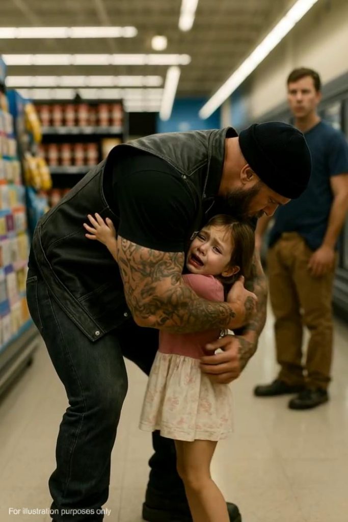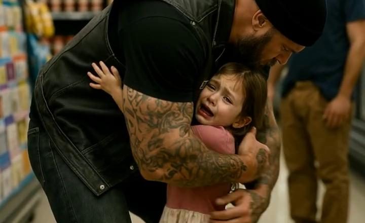 Pak se téměř zoufale vrhla na nejimpozantnějšího muže v obchodě. Obr, celý potetovaný, v kožené vestě s nápisem „Demons MC“. Scéna doslova ztuhla: zákazníci ustoupili, matky přitáhly své děti blíž, vzduch ztěžkl. Všichni čekali výbuch agrese.