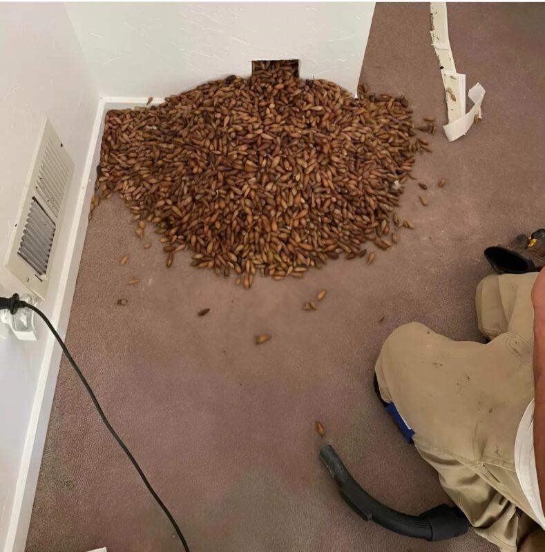 Když ale odborník dorazil a otevřel část zdi, zůstal ohromený – vypadl obrovský proud žaludů, valil se jako řeka.