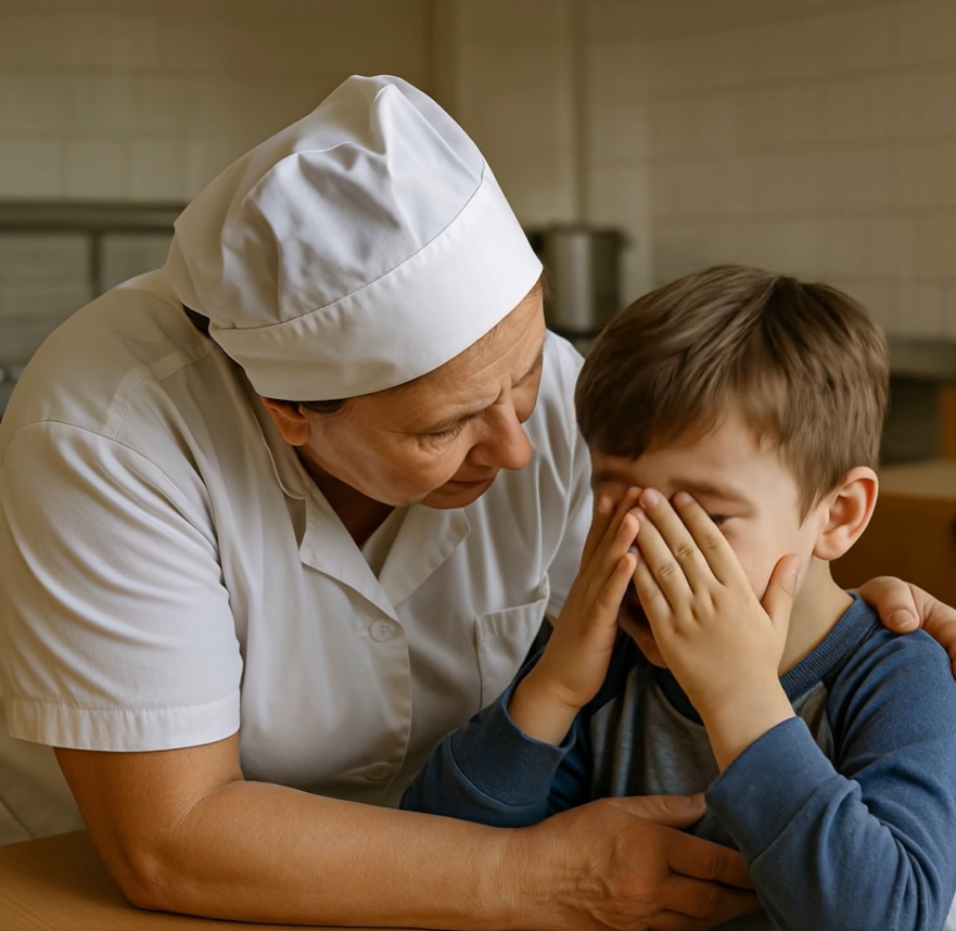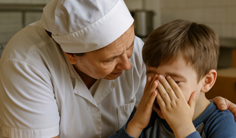 Do místnosti vstoupila kuchařka. Byla to žena, kterou většina dětí znala jen zpoza výdejního okénka. Její tvář byla poznamenaná tvrdou prací, ruce měla mozolnaté a hlas, který se ozval, byl jasný a rázný. V okamžiku se smích zastavil. Děti cítily, že to, co se právě odehrálo, nepřejde bez povšimnutí.
