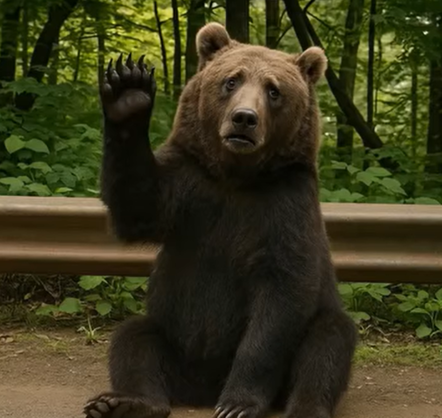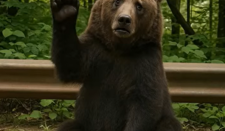 Medvědice zvedla přední tlapu a mávala jí ve vzduchu – přesně tak, jak to dělají lidé, když chtějí stopnout auto. Petr zůstal sedět v šoku a několik sekund přemýšlel, jestli ho únava nezradila a nevidí halucinace.