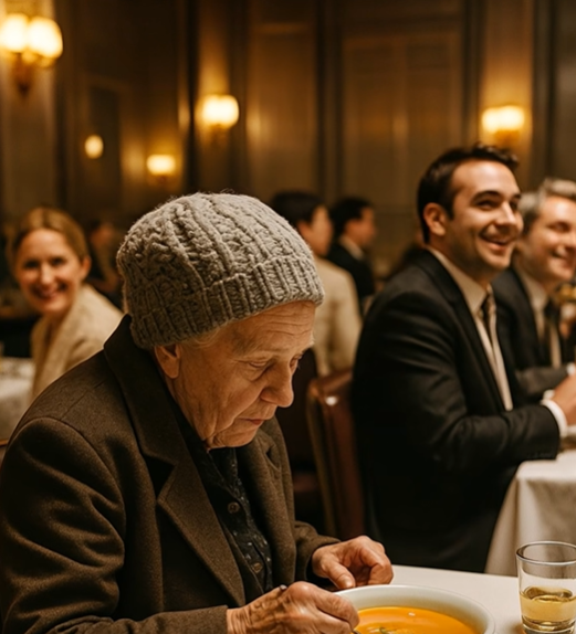 Rozhovor slyšeli hosté u vedlejšího stolu a okamžitě se začali smát. „Přišla sem, aby si dala polévku,“ ušklíbl se muž ve zlatých hodinkách. Smích se začal šířit místností, někdo si šeptal posměšky, jiní se jen ironicky usmívali. Celá atmosféra se naplnila napětím – nebylo to jen o jídle, bylo to o lidské důstojnosti.