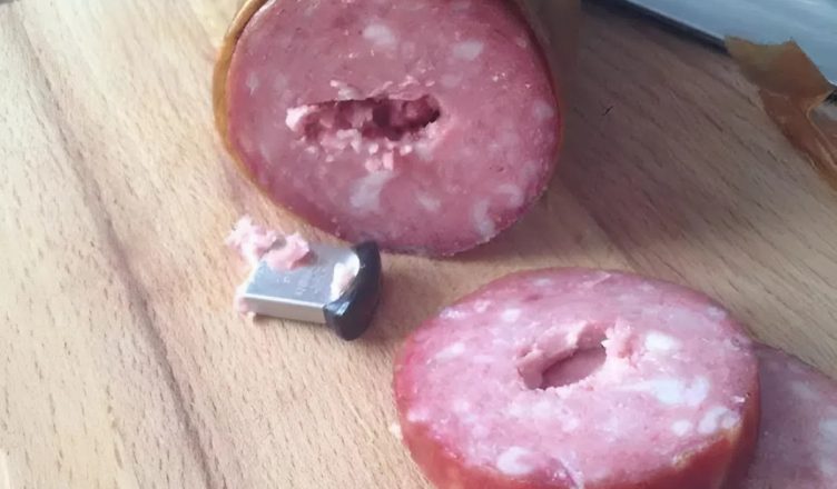 Nejdřív jsem si myslel, že je to kus kovu. Začal jsem to vytahovat – a z růžové hmoty jsem vytáhl… flashku. Úplně obyčejnou, na několik gigabajtů. Odporem se mi zvedl žaludek – vždyť jsem tu klobásu už jedl! Jak se vůbec mohla flashka dostat do továrenského výrobku, a to ne zrovna levného?