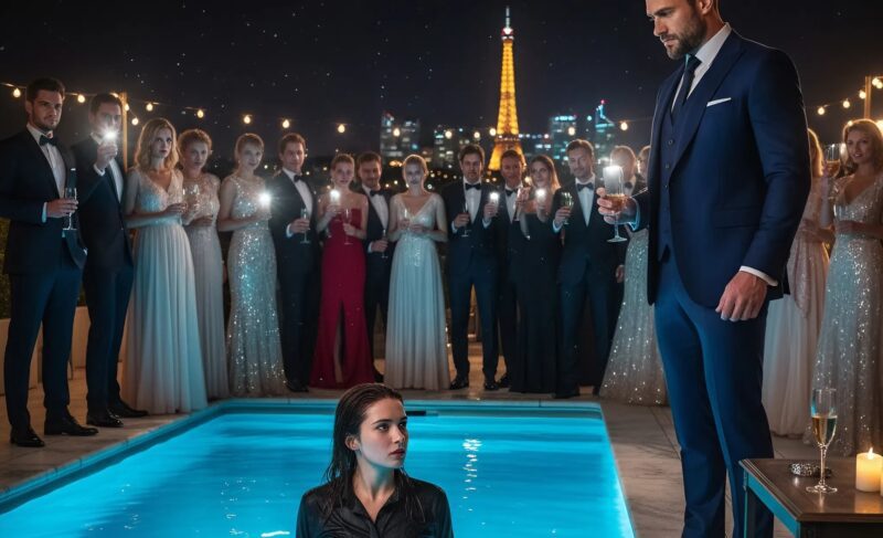 Bez varování ji odstrčila. Tác vyletěl, sklenky se roztříštily o zem a Émilie spadla do osvětleného bazénu. Voda vystříkla na hosty, ti vykřikli — a pak se začali smát.