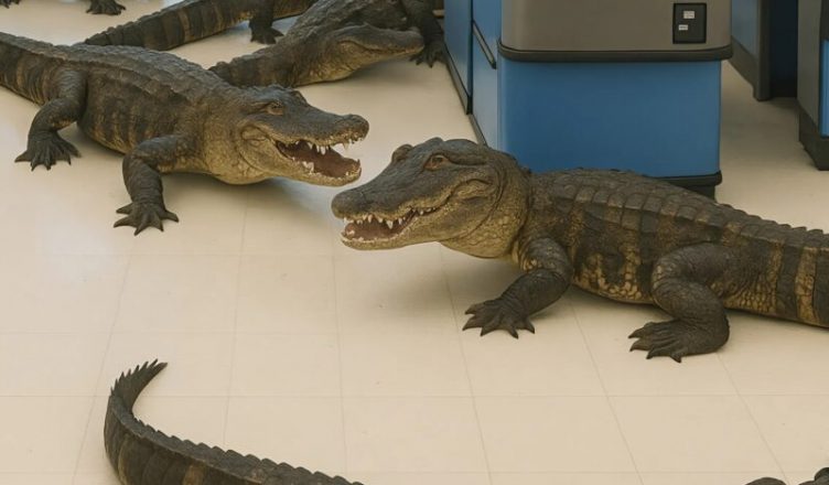 Byl to obyčejný den v supermarketu. Všechno bylo klidné a tiché, dokud se náhle několik lidí nezačalo křikem děsit.— Bože můj, to jsou aligátoři!