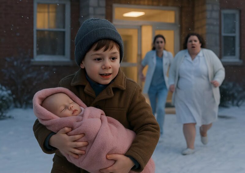 Ale chlapec se ani neotočil. Běžel chodbou a pevně držel miminko u sebe. Sestra se rozběhla za ním, přivolala ochranku, otec se přidal. Na chodbě vypukl skutečný poplach.