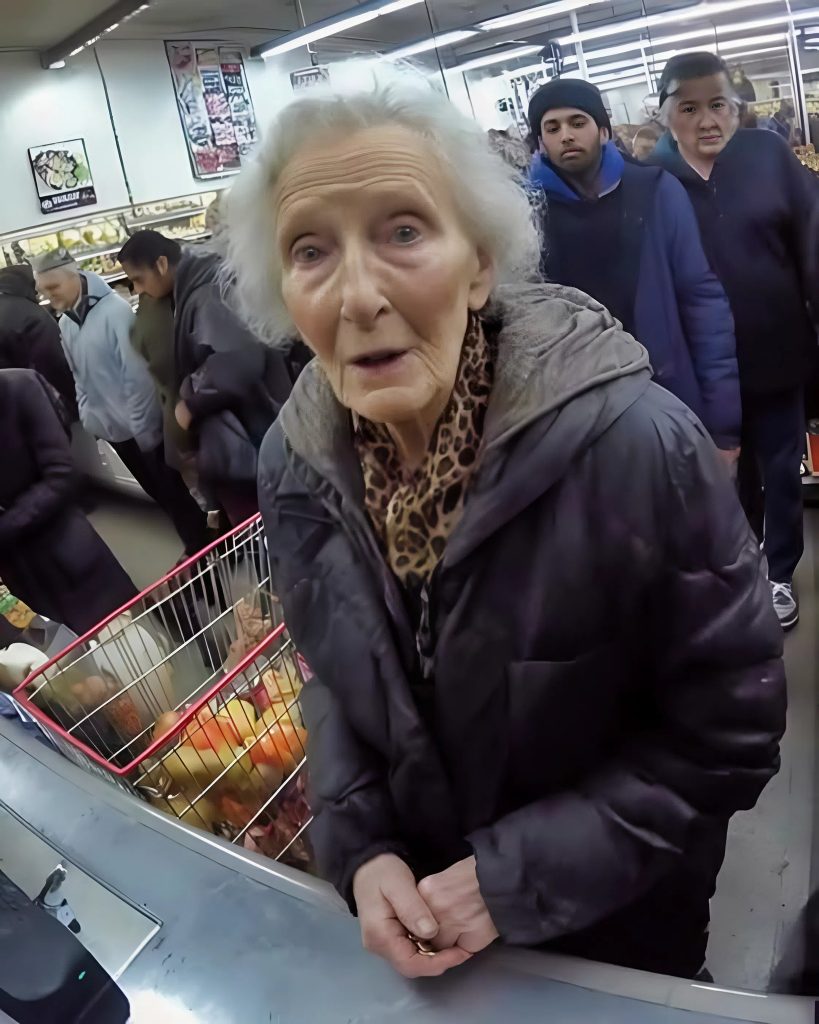 Přede mnou stála drobná stará paní, odhadem kolem osmdesáti let. V jejím košíku nebylo nic navíc — jen chléb, mléko, pár konzerv, pytlík brambor a jeden jablečný koláč. Pohybovala se pomalu, jako by si byla vědoma každého pohledu kolem sebe, a nervózně sledovala, jak pokladní skenuje jednotlivé položky.