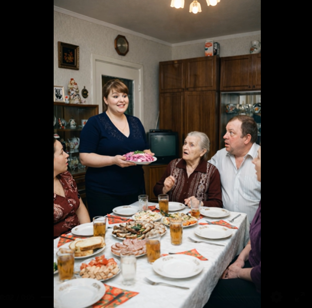 Hosté už seděli kolem dlouhého stolu. Smích, cinkání sklenic, nucená zdvořilost. Tchyně seděla v čele jako samozvaná královna večera. Můj manžel po jejím boku. Ani jeden se na mě nepodíval, když jsem přinesla hlavní chod.