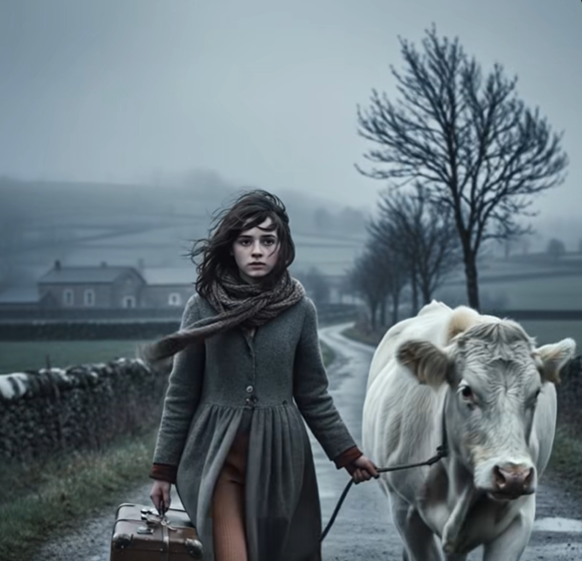 Studený vítr z Centrálního masivu jí bičoval tvář, když se Elise vleklým krokem sunula po kamenité cestě. Byla drobná, příliš mladá na tak těžké ticho, které ji obklopovalo. Za sebou táhla otlučený kartonový kufr, jehož rohy byly rozmáčené a hrozily, že se každou chvíli rozpadnou. Uvnitř nebylo nic cenného: pár obnošených šatů, hadrová panenka nasáklá matčiným parfémem a stará svatební fotografie se zažloutlými okraji.V levé ruce svírala provaz. Na jeho konci klidně kráčela Bleue, kráva plemene Aubrac s hlubokýma hnědýma očima. Jediné, co jí zbylo.