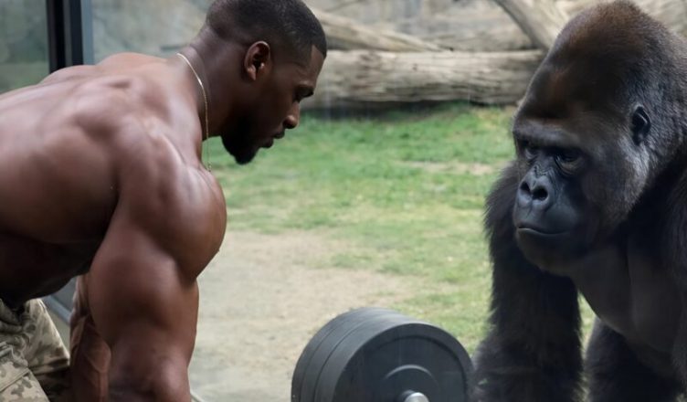 Velmi silný atlet se rozhodl natočit efektní video a kvůli získání zhlédnutí uspořádal „soutěž“ s gorilou. Ukázal zvířeti, jak zvedá těžkou činku, a čekal, že šelma jeho výkon zopakuje