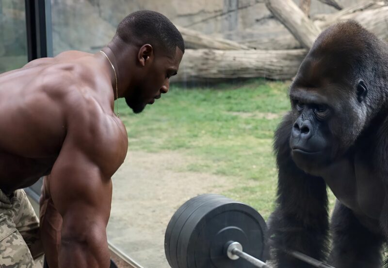 Chytil činku, napnul svaly a působivě zvedl těžkou váhu. Lidé kolem začali šeptat, někdo vytáhl telefon. Kamery už běžely. Atlet se pyšně podíval na gorilu, jako by říkal: „Teď jsi na řadě ty.“