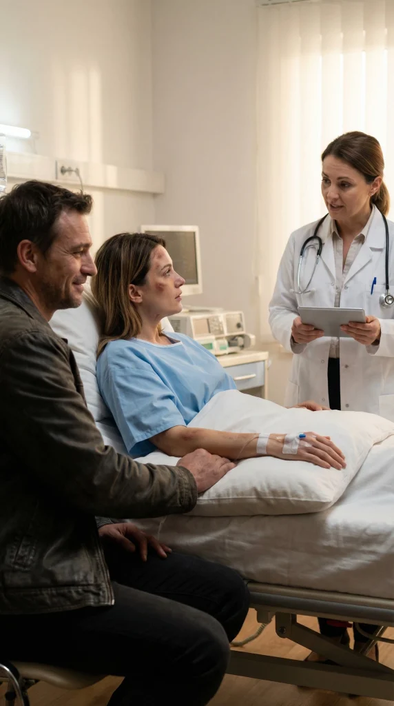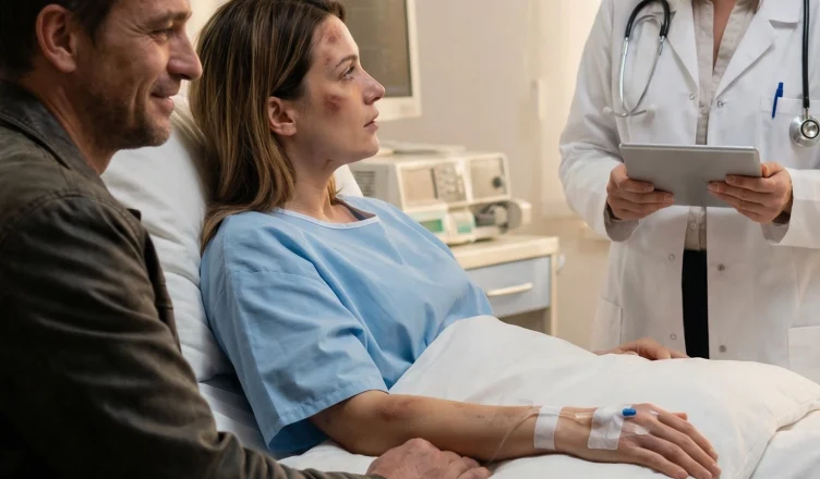 Potom vstoupila lékařka. Byla mladá, vyrovnaná, soustředěná. Nepůsobila dojmem, že spěchá. Vyšetřovala mě důkladněji, než bylo běžné. Odhrnula mi rukáv, zkontrolovala žebra, zápěstí, ramena. Dívala se mi přímo do očí, ne skrz mě jako ostatní. Daniel mezitím stiskával mou ruku tak silně, že to bolelo.