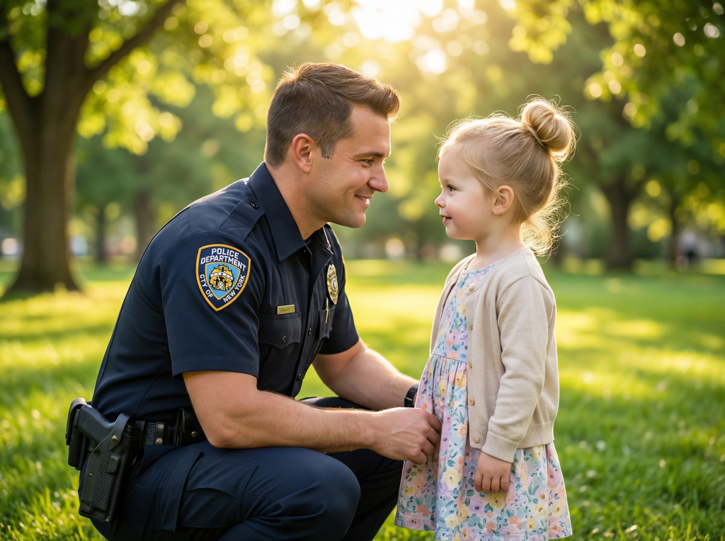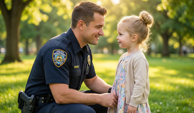 Policista byl zpočátku překvapený, ale pak se nemohl ubránit úsměvu. Jemně dívku objal a řekl: