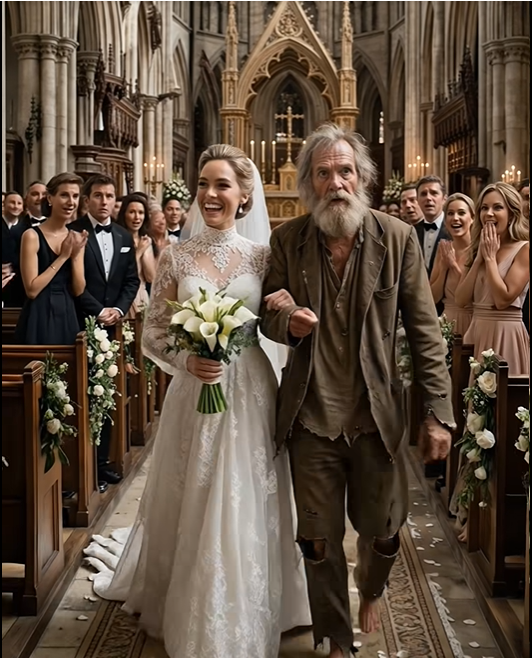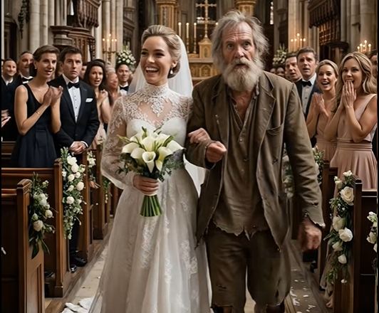 Když se dveře otevřely, uvnitř zavládlo úplné ticho. Všechny pohledy se upřely na ně: nevěsta v bílých šatech a člověk, kterého ještě nedávno snažili vyhnat.
