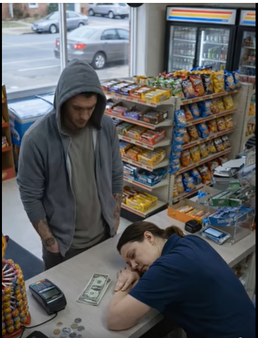 Muž podezřelého vzhledu vešel do obchodu a s údivem zjistil, že prodavačka spí na pracovišti a pokladna je otevřená — a pak se stalo něco nemyslitelného 😱😨