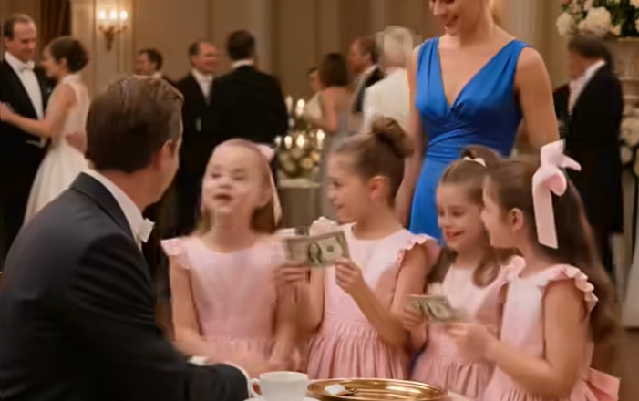 Jedna z dívek mu vtiskla do ruky pomačkaný dolar.
