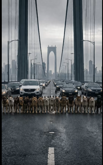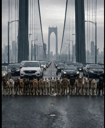 Dvacet psů stálo přímo uprostřed mostu a odmítalo se hnout, čímž úplně zablokovali silnici. Auta se seřadila do dlouhé kolony, nepřetržitě troubila a řidiči už začínali ztrácet trpělivost. Někteří křičeli z oken, jiní se snažili objet překážku, ale to bylo nemožné. Psi stáli v jedné linii, jako by to dělali schválně, jako by přesně věděli, co dělají.
