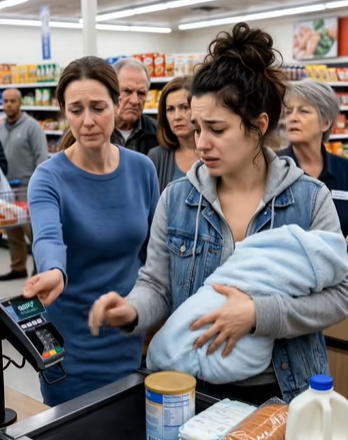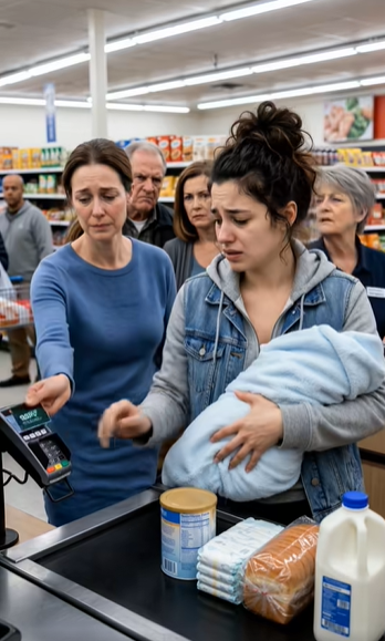 Ve frontě stála žena s dítětem v náručí. Dítě bylo zabalené v dece a ona ho držela opatrně, jako by se bála sebemenšího pohybu. V jejím košíku nebyly téměř žádné běžné potraviny. Byly tam plenky, kojenecké mléko, vlhčené ubrousky a jen jeden balík chleba — pro ni samotnou.