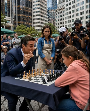 Uprostřed rušného městského náměstí, obklopeného skleněnými mrakodrapy, stál stůl se šachovnicí. Dav se už shromáždil — někteří pili kávu, jiní natáčeli scénu na telefony a další se zastavili jen ze zvědavosti. Všichni upírali pohled na muže v drahém obleku — Daniela Cranea, známého investora, který rád ukazoval svou převahu nejen v byznysu, ale v jakékoli hře.