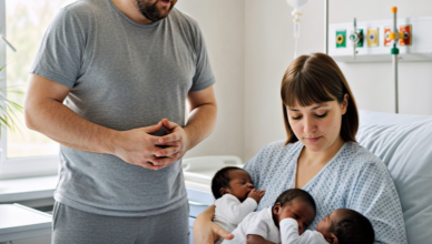 Když porodní asistentka položila čerstvé mamince do náruče tři novorozeňata, žena se rozplakala štěstím. Jenže do pokoje vešel její manžel — a jeho
